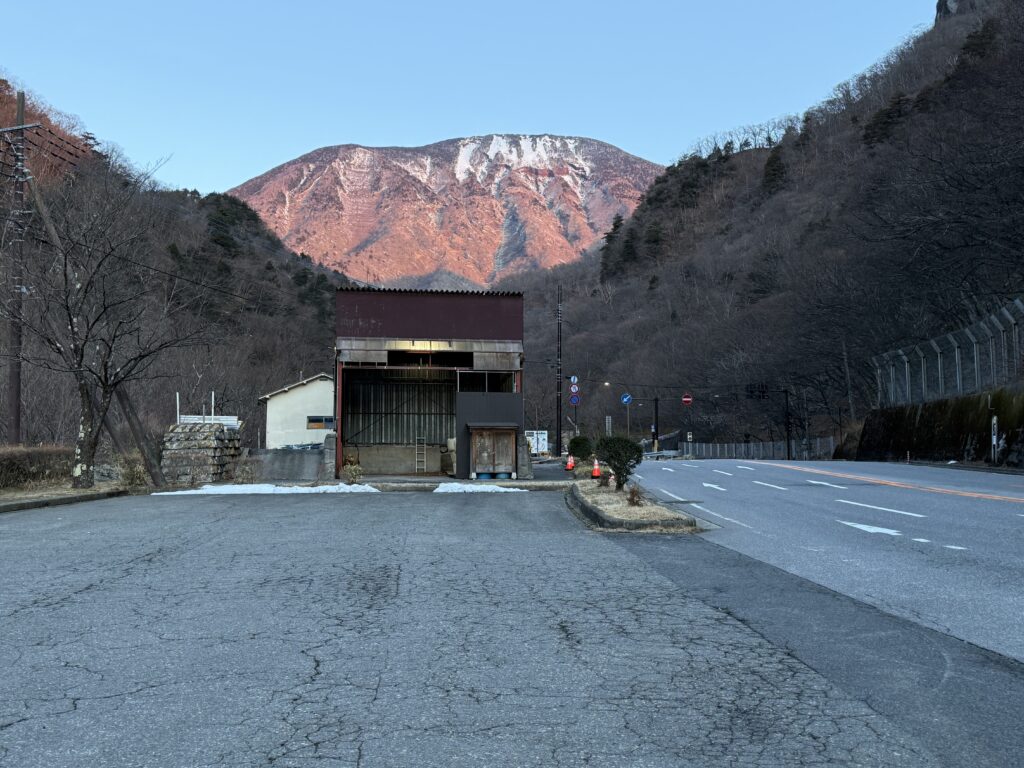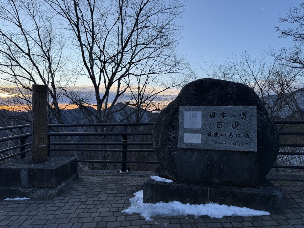今日は朝早くから出動!日光いろは坂の手前にある休憩所、すぐ目の前の道から上り下りが一方通行のいろは坂です。