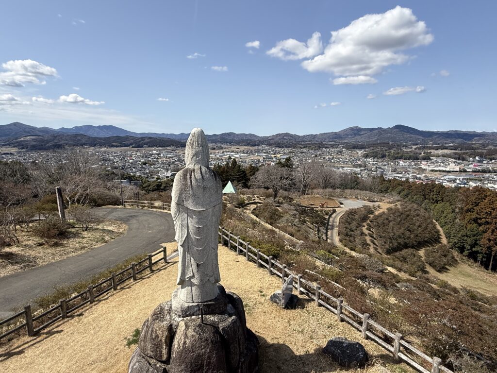 正福寺さんを奥に車で登っていくと公園のようになった所に観音様が、この辺りのバイパスが完成たときに作られたそうで、事故がないように見守っておられるとか…確かに見晴らしがよく見守ってる感がある。