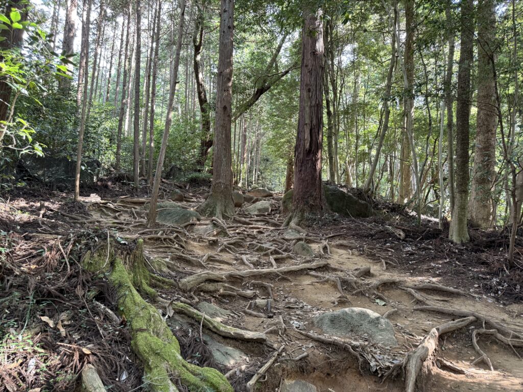 最初は石段と根っこゾーンが続きます、結構な勾配も続きます。