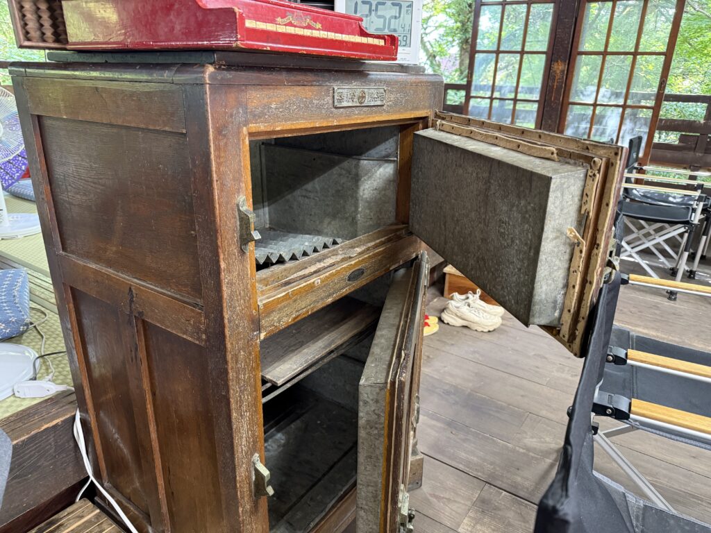 これは昔の冷蔵庫だそうです、話では大正から昭和に入るくらいの物だそうです。