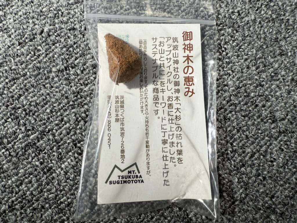 こちらが大杉の落ち葉を集めてお香にした物だそうです。