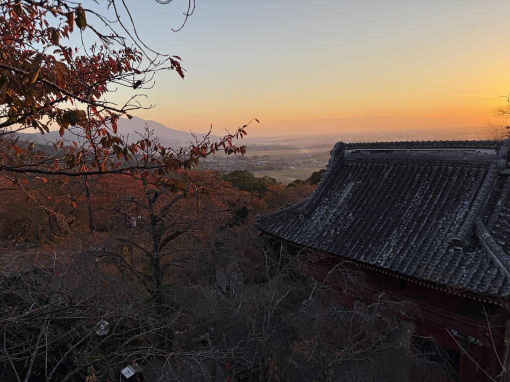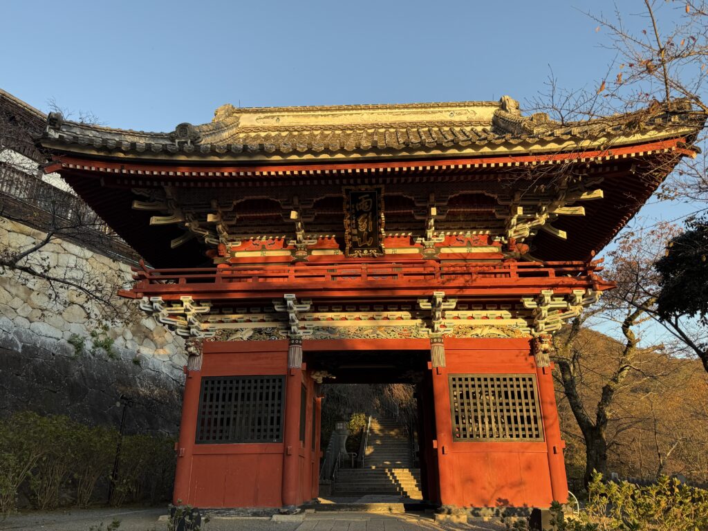 なんてカッコいい山門でしょう!夕日が当たって朱赤の色のコントラストが右側と左側で違って見えてるのがまたなんともいい!